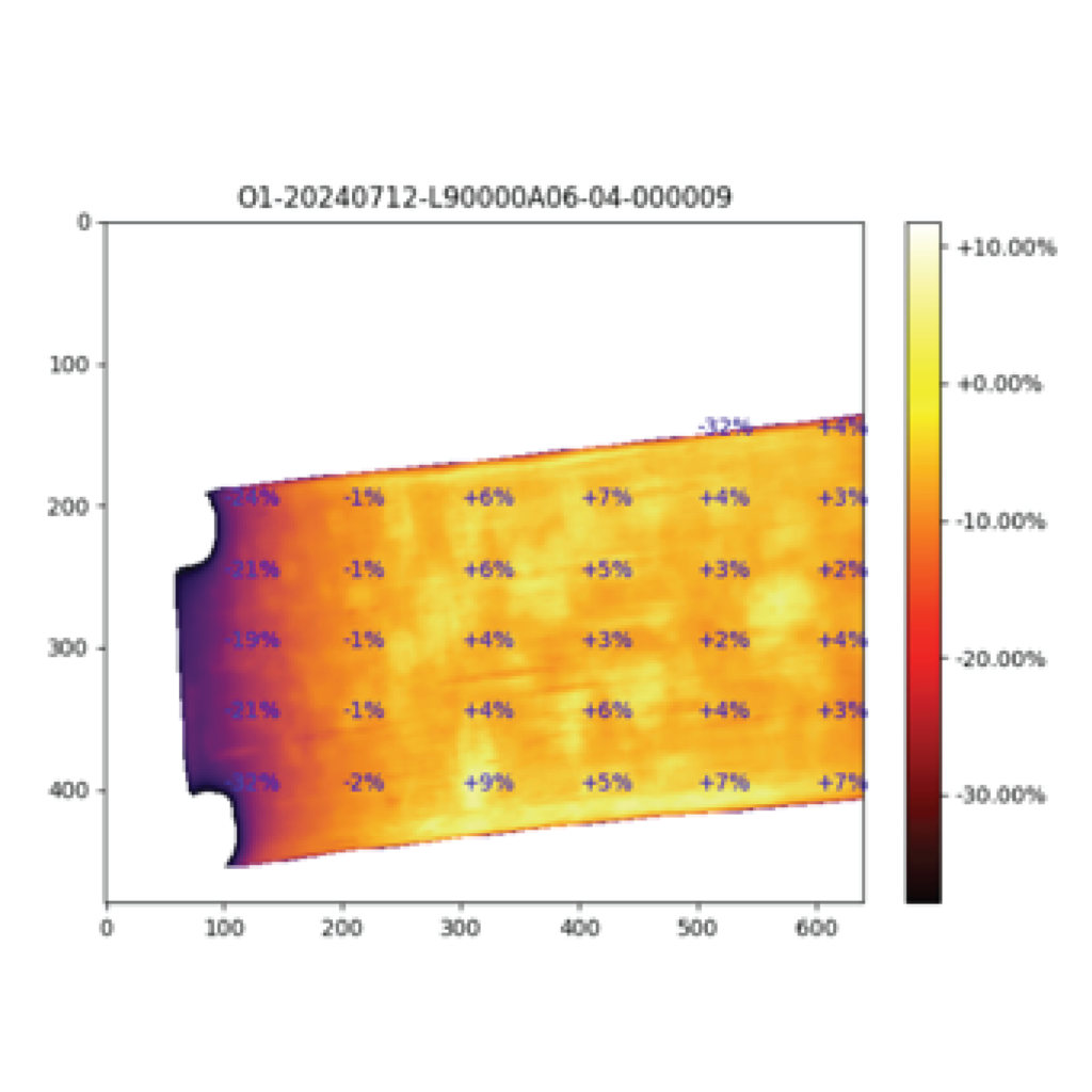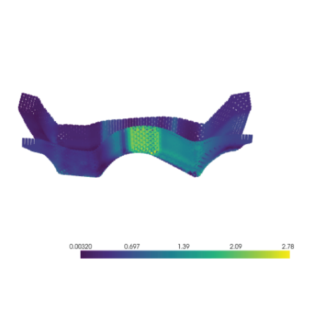 Digital simulations display predicted formed part surface with geometric error to design, informing customers of manufacturability and guiding engineers making any tweaks to layup or tool design.